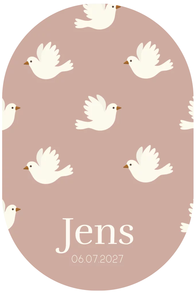 Een lief geboortekaartje met duiven in een roze ovaal. Pas het ontwerp naar wens aan in onze online editor.