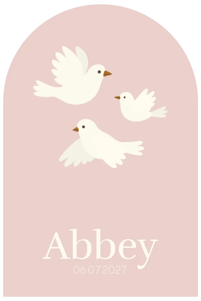 Lief geboortekaartje met vogels in roze tinten. Pas het ontwerp naar wens aan in onze online editor.