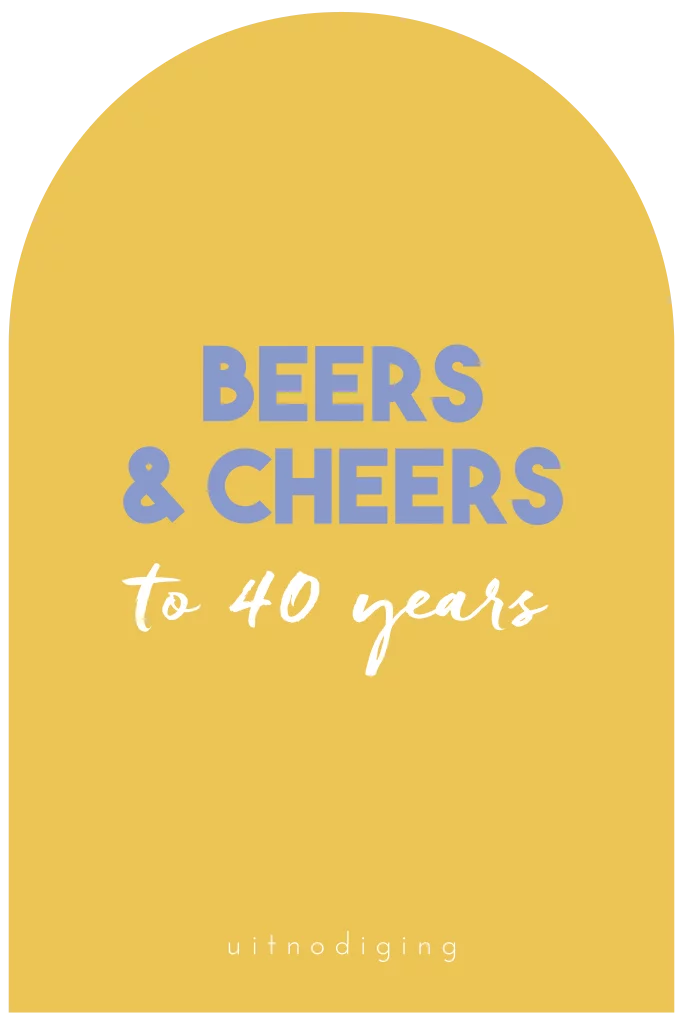 Een unieke uitnodiging voor een verjaardag met een afgeronde vorm en vrolijke kleuren. Op de voorkant staat de tekst ‘Beers & cheers to 40 years’, te gebruiken voor als je 40 jaar wordt, maar natuurlijk ook als je 30 jaar, 21 jaar of 50 jaar oud wordt.