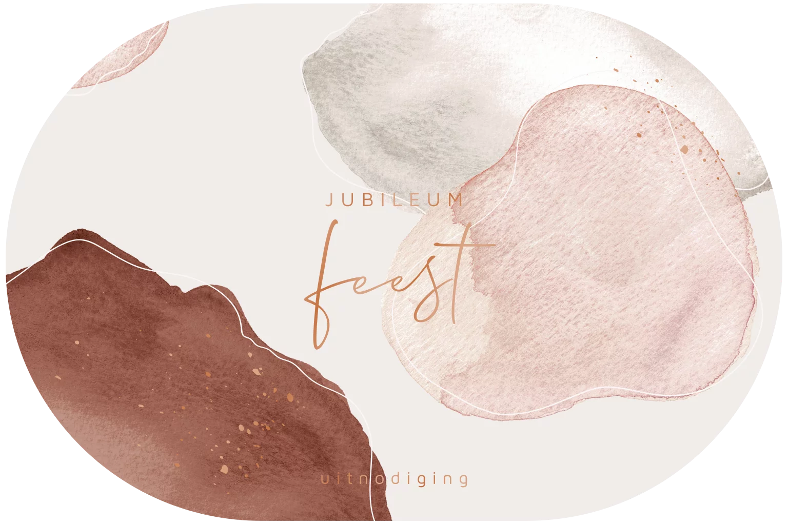 Hippe mooie uitnodiging in afgeronde vorm voor een jubileumfeest. Op de kaart is gebruik gemaakt van watercolor in verschillende roze tinten.