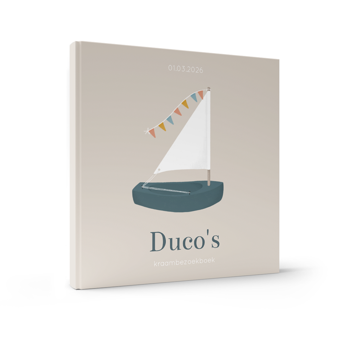 Kraambezoekboek passend bij geboortekaartje met bootje