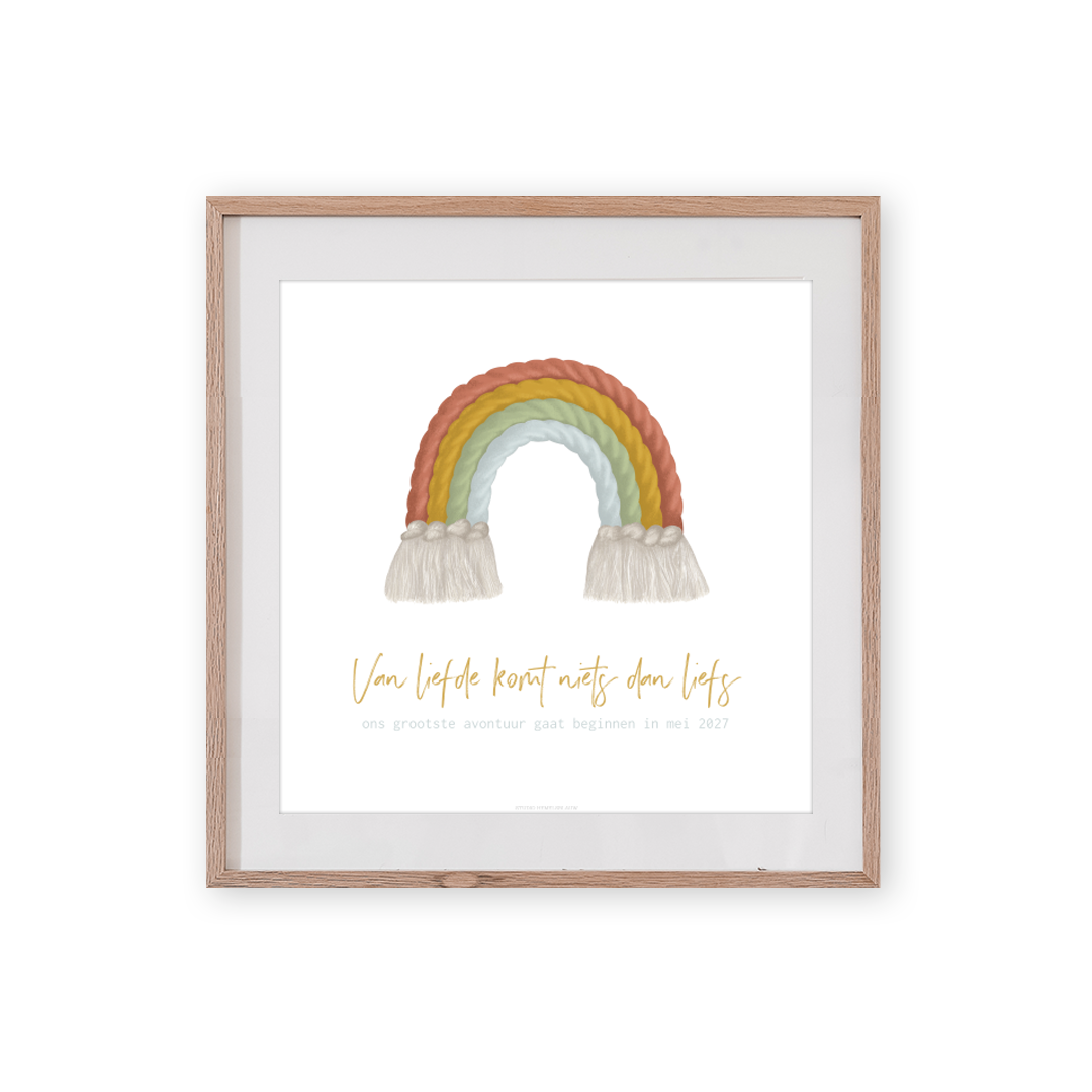 Poster met regenboog om zwangerschap mee aan te kondigen