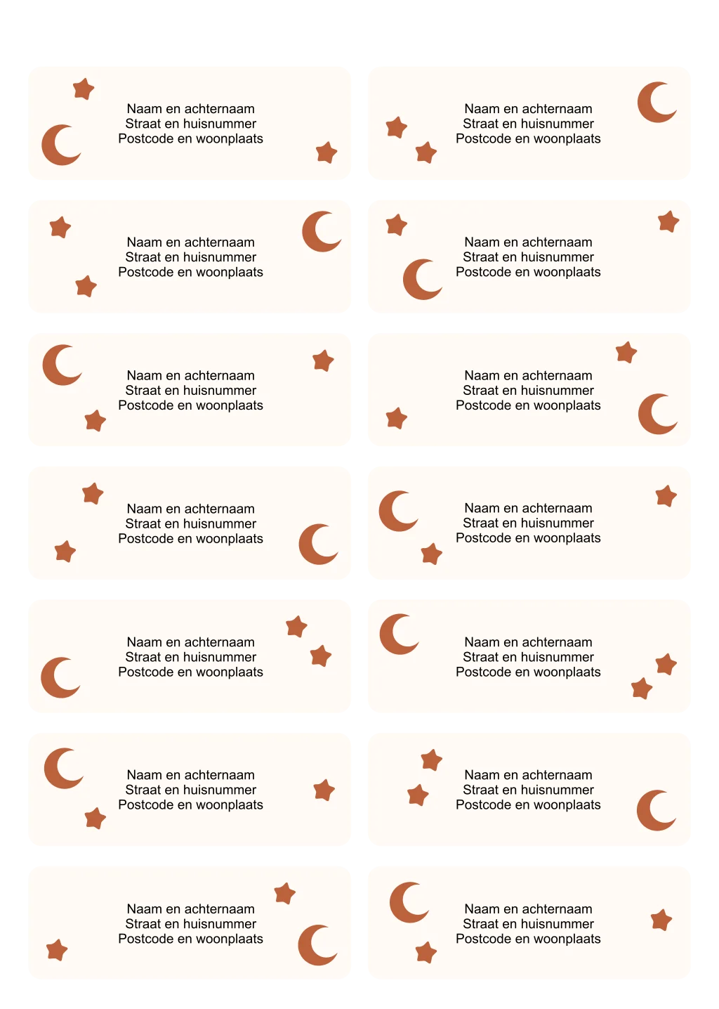 Maantjes en sterretjes adresstickers met afgeronde hoeken
