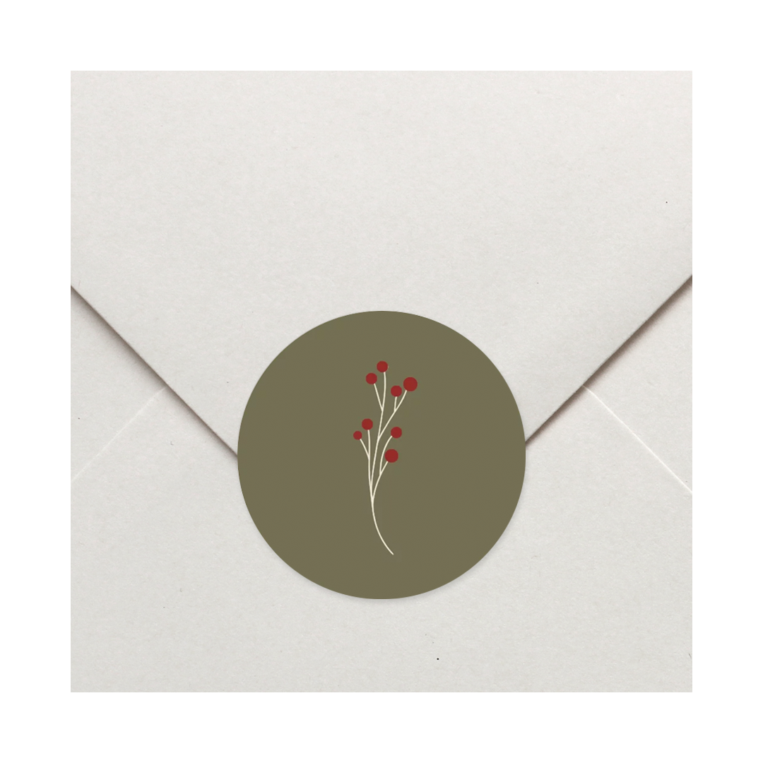 Onze exclusieve kerst sluitstickers, voorzien van een charmant takje met rode besjes, voegen een vleugje warmte en stijl toe aan je enveloppen.