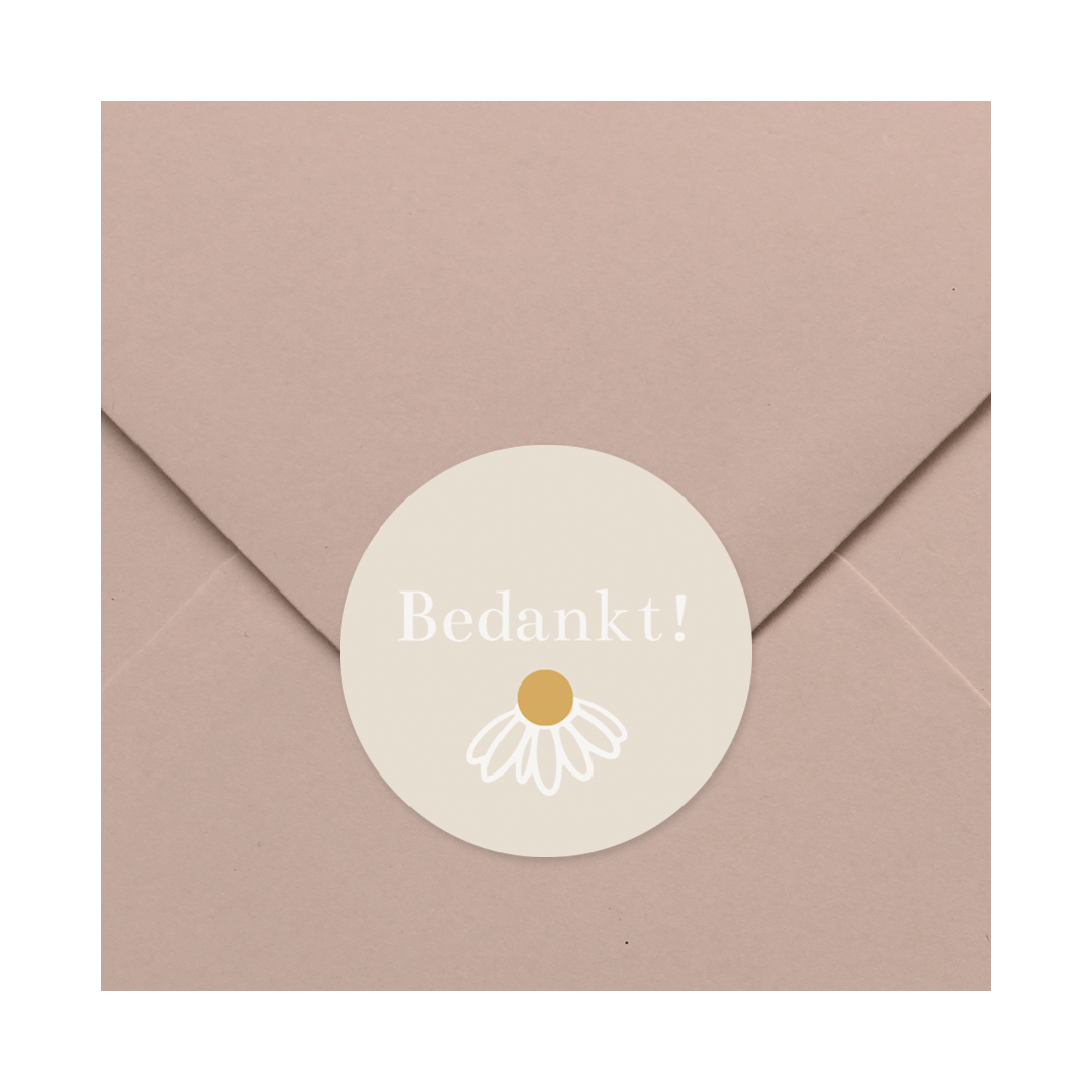 Minimalistische 'bedankt!' sluitsticker met madeliefje
