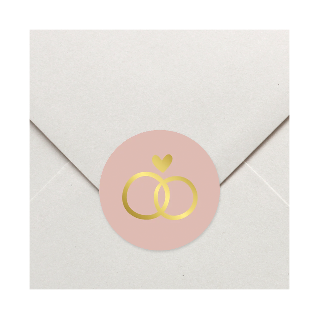Sluitsticker met ringen en een hartje in goudfolie - Colourful Joy
