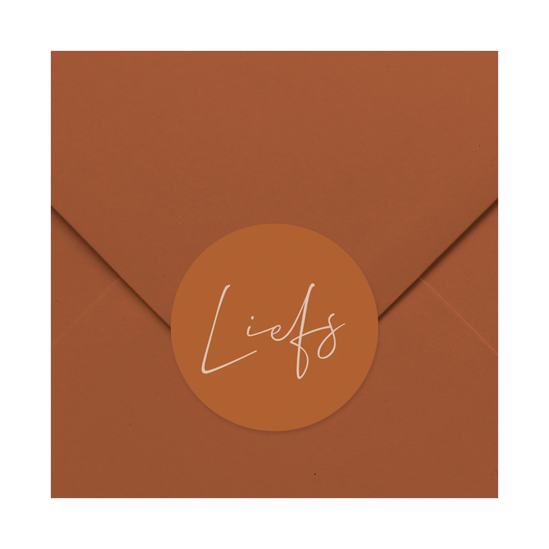 Sluitzegel met tekst 'Liefs' passend bij trouwhuisstijl Rustic Romance