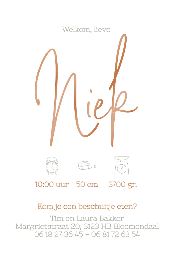 Minimalistisch klassiek geboortekaartje