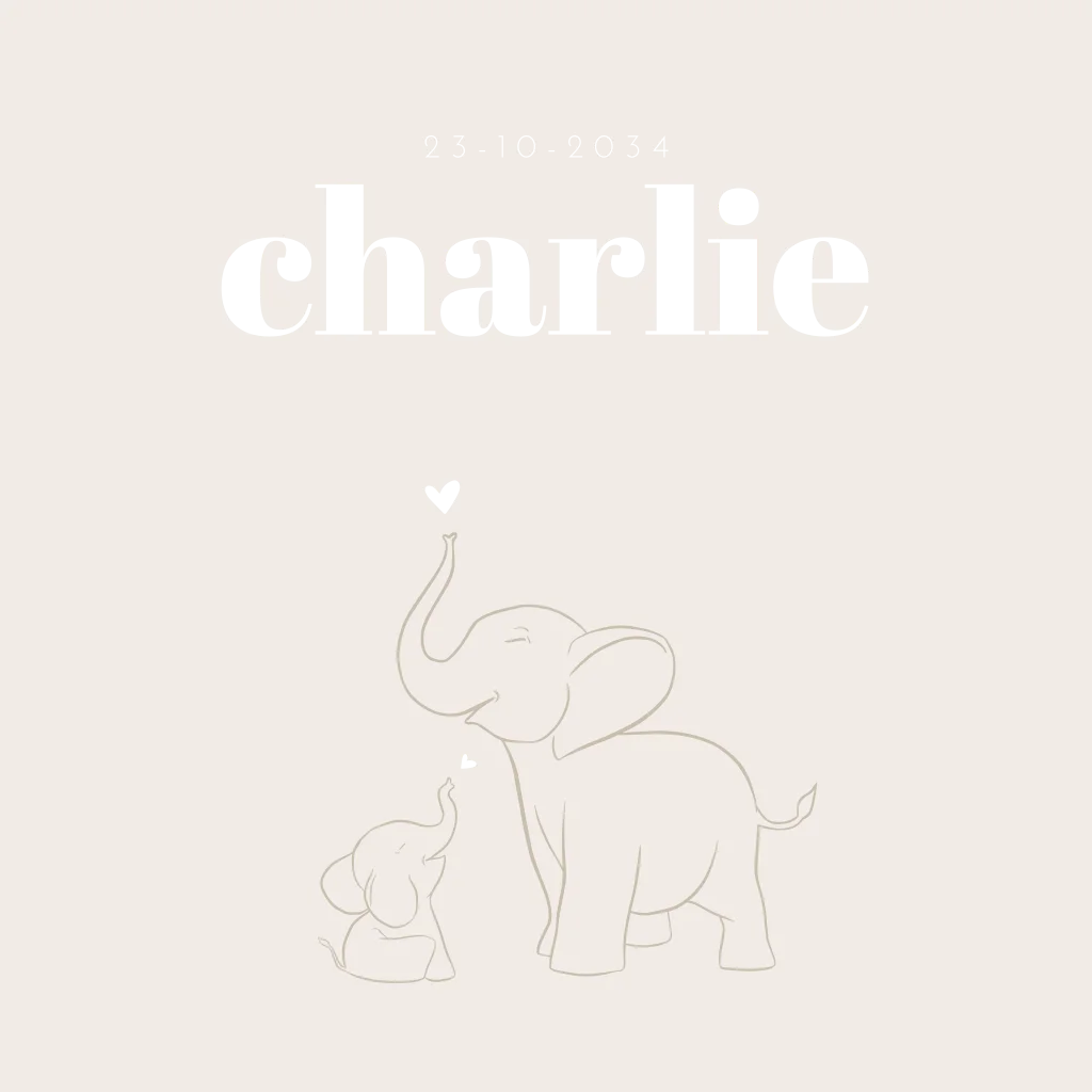 Geboortekaartje voor een jongen met olifantjes en holografisch folie
