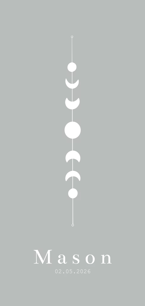 Deze maanslinger zie je in veel babykamers hangen. Leuk om hem op het geboortekaartje te verwerken! Je kunt de maanslinger ook een andere foliekleur geven.