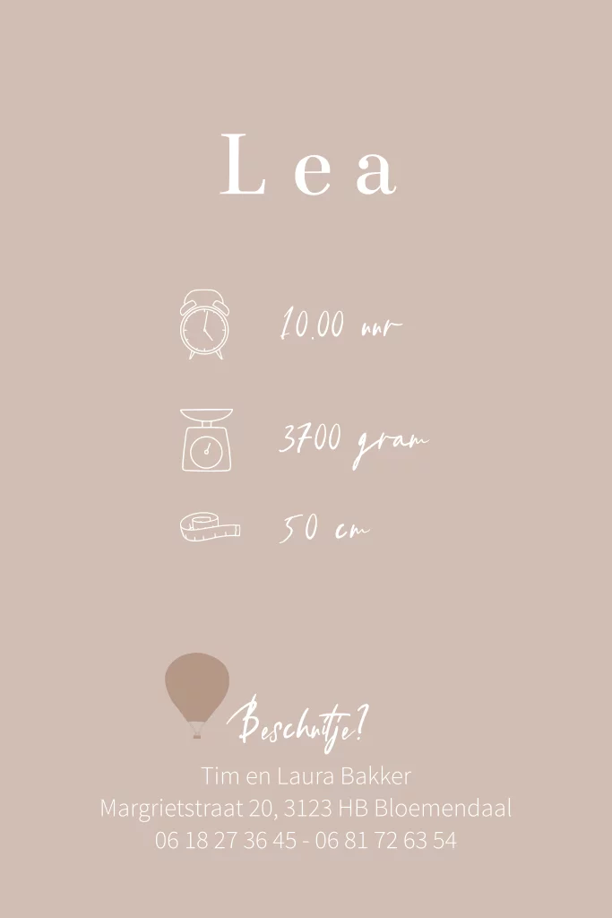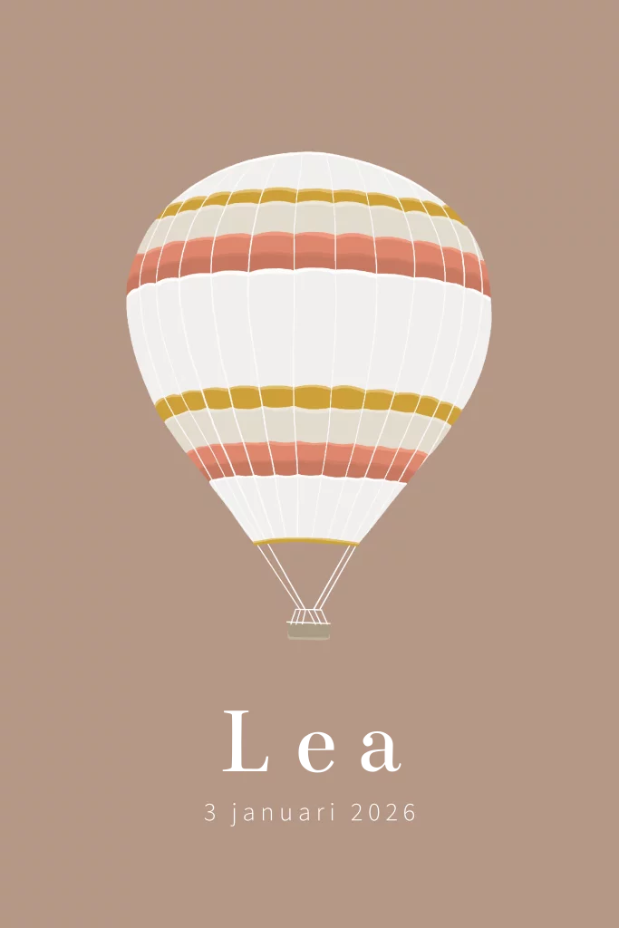 Geboortekaartje voor een meisje met luchtballon en roséfolie letters
