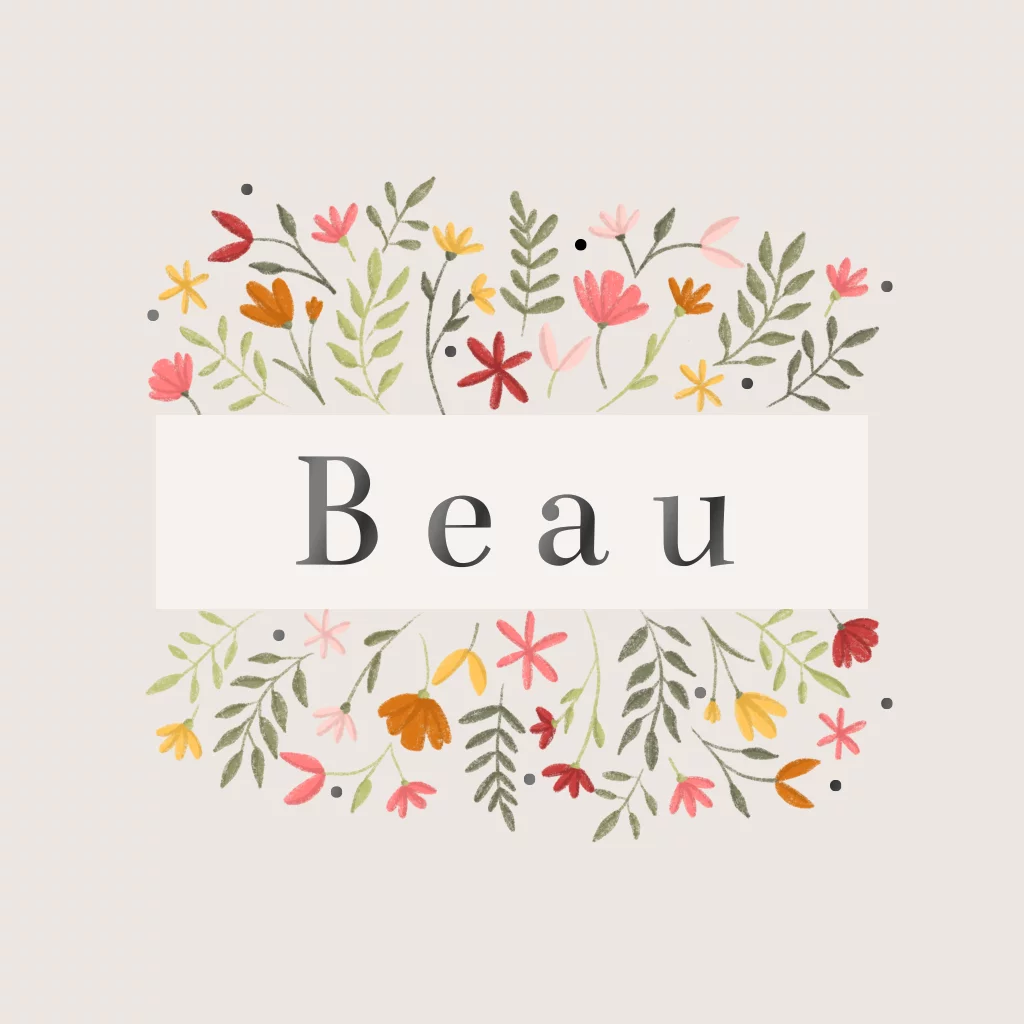 Lief geboortekaartje met bloemetjes en details in zwartkleurig folie