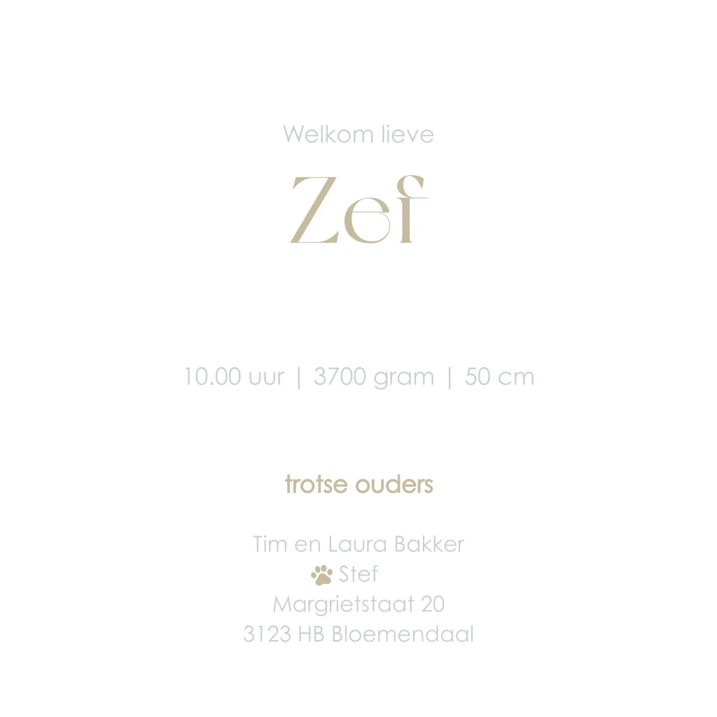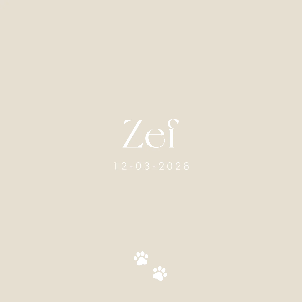 Geboortekaartje voor een jongen met voetstapjes van jullie huisdier. Eenvoudig zelf aan te passen in onze editor.