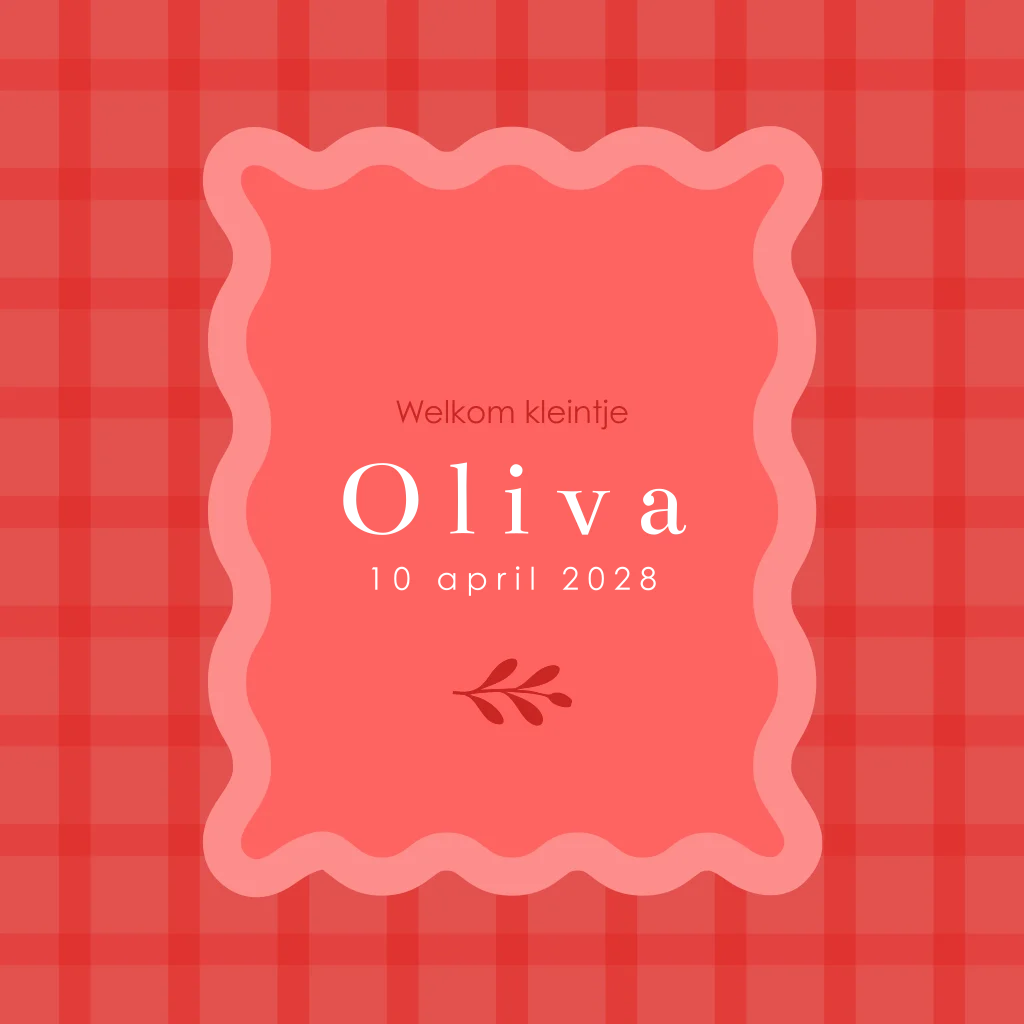 Kleurig geboortekaartje met ruitjes en goudfolie voor een meisje