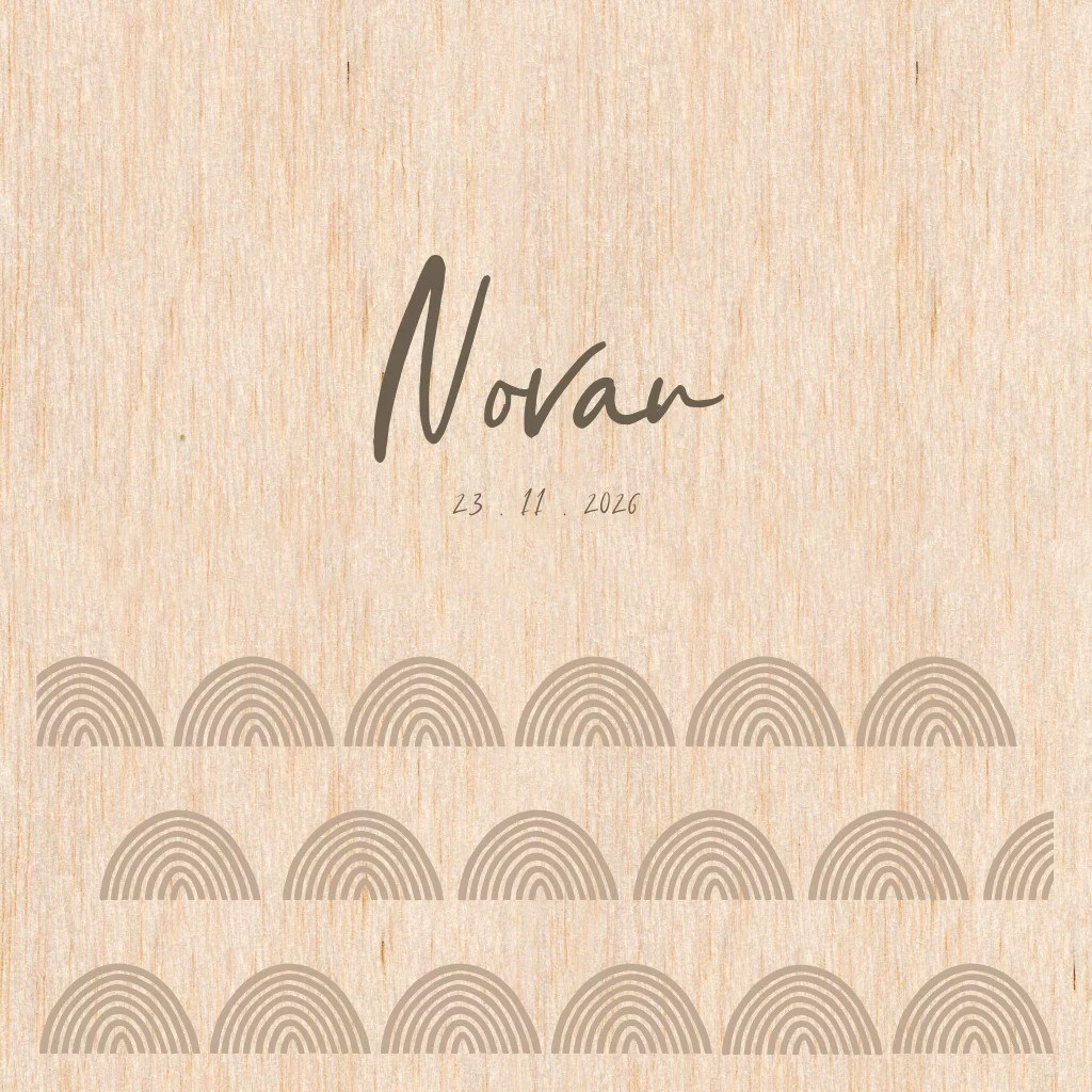 Geboortekaartje van echt hout met regenboogjes voor een jongen