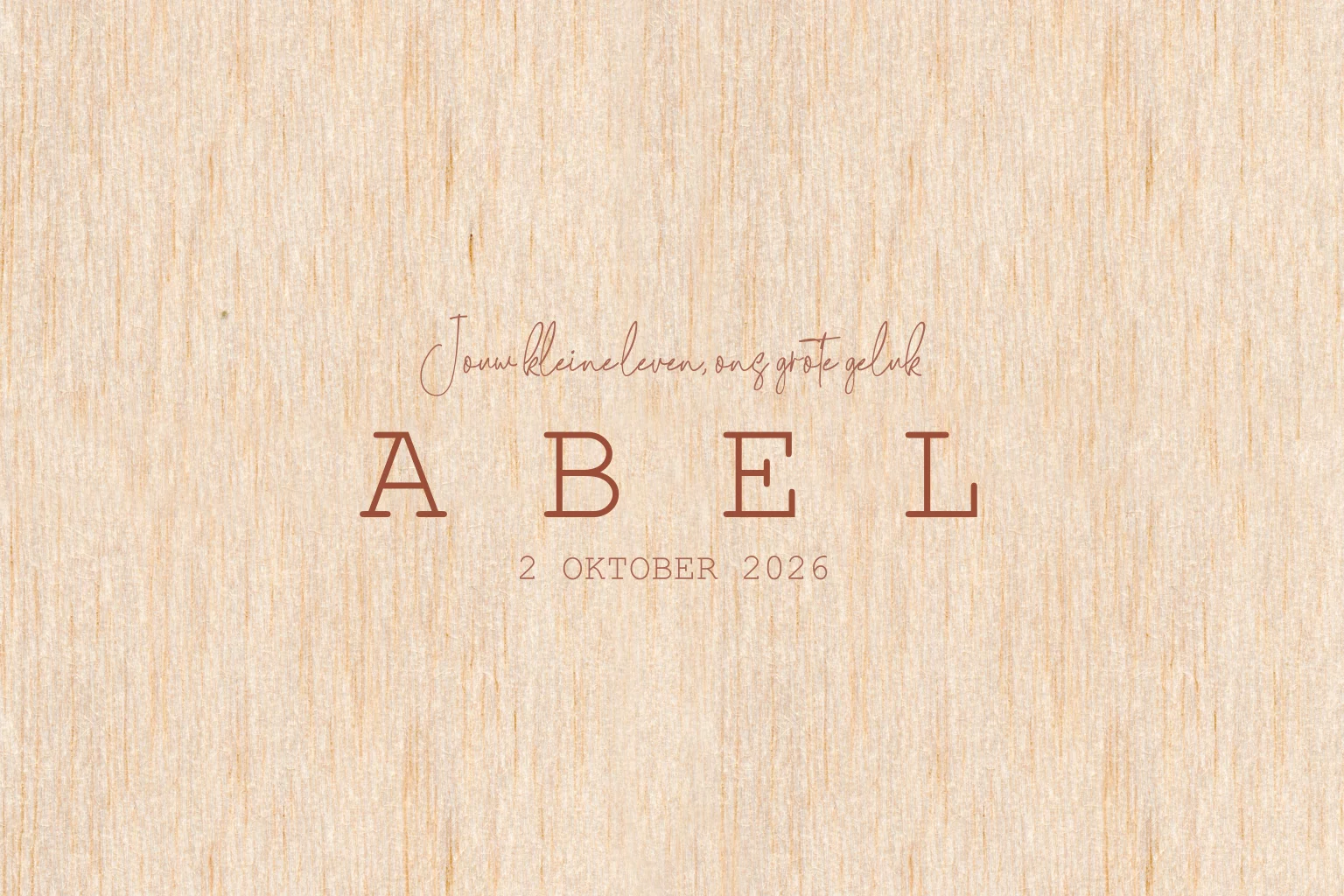 Lief minimalistisch geboortekaartje van echt hout voor een jongen. De kleur van de tekst kun je helemaal zelf aanpassen in de editor!
