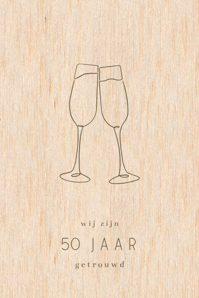 Houten uitnodiging huwelijksjubileum 50 jaar getrouwd