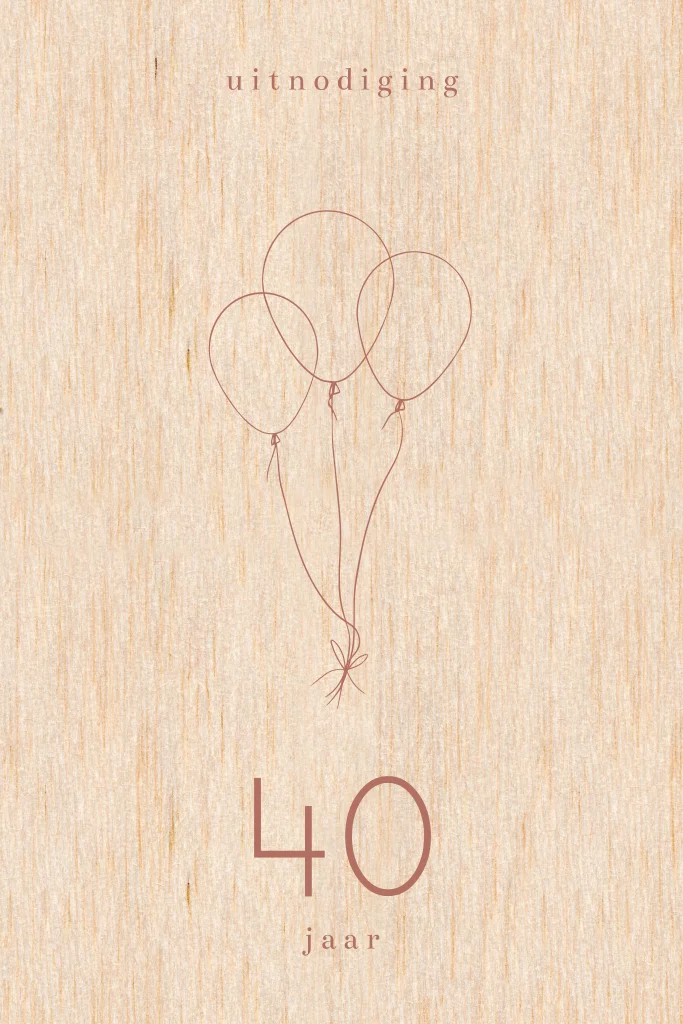 Uitnodiging verjaardag 40 jaar one line art ballonnen hout