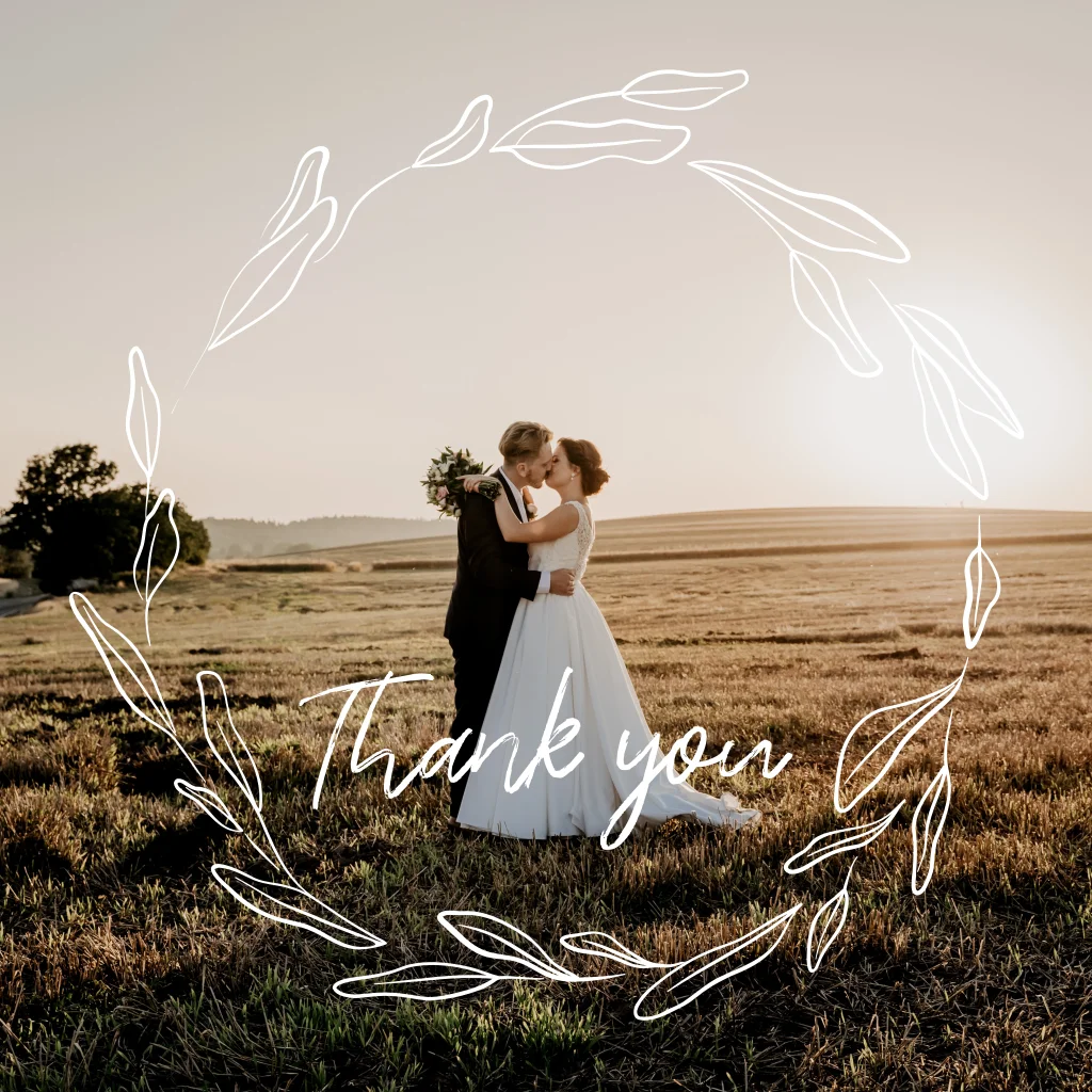 Maak jouw bruiloftsherinneringen tastbaar met onze prachtige bedankkaarten met foto! Deze unieke kaarten zijn de perfecte manier om je dankbaarheid te tonen aan je geliefde gasten en tegelijkertijd een blijvende herinnering aan jullie speciale dag te creëren.