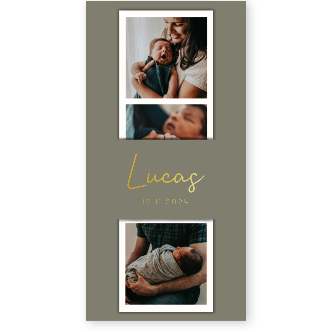 Geboortekaartje met losse fotostrip met aanpasbare foto's