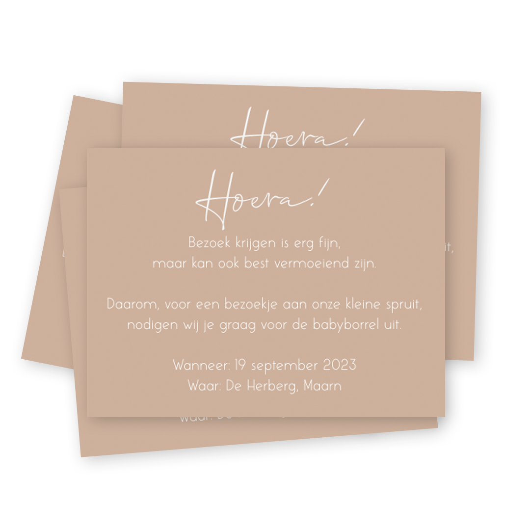 Voeg deze uitnodigingen voor het kraamfeest toe aan het geboortekaartje. Zo kun je eenvoudig de juiste gasten uitnodigen.