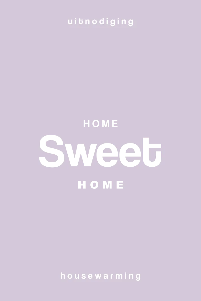 Rustige lila uitnodiging voor een housewarming met de tekst 'Home sweet home'. Op de kaart is gebruik gemaakt van regenboog folie, oftewel holografisch folie.