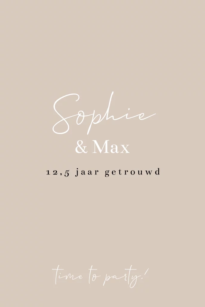 Minimalistische typografische rustige zandkleurige uitnodiging voor een huwelijksjubileum. Op de voorkant staat 12,5 jaar getrouwd, maar dit kun je zelf aanpassen naar elk gewenst getal.