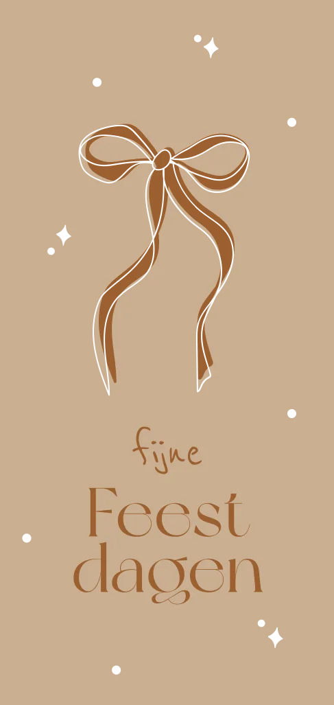 Mooie kerstkaart of nieuwjaarskaart met okerkleurige strik en details van goudfolie. Typ op de achterkant je persoonlijke tekst of schrijf de kaartjes wanneer je ze thuis ontvangt met de hand