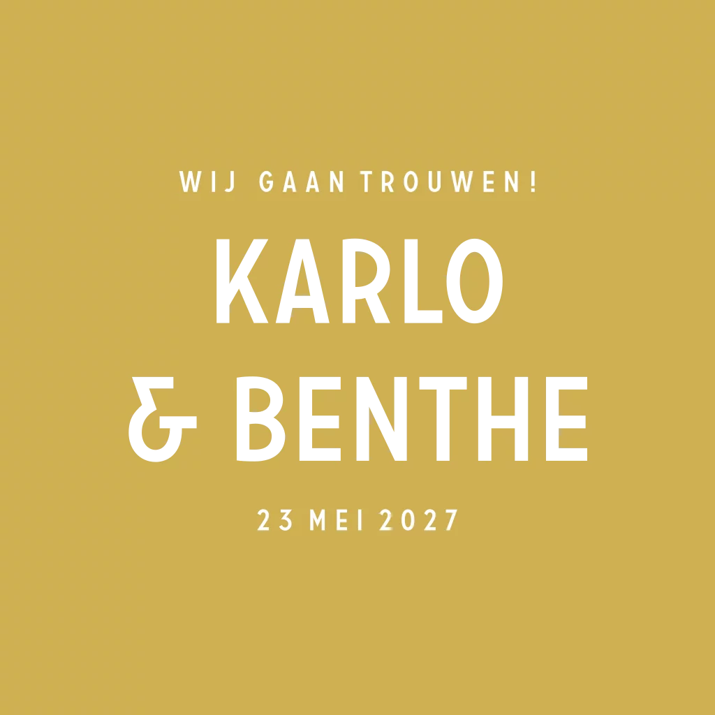Ben je klaar om de mooiste dag van jullie leven te vieren? Maak jullie trouwdag nog specialer met onze unieke en persoonlijke trouwkaarten! Bij ons kun je de trouwkaart aanpassen met jullie eigen stijl, een persoonlijke foto en een betekenisvolle boodschap.