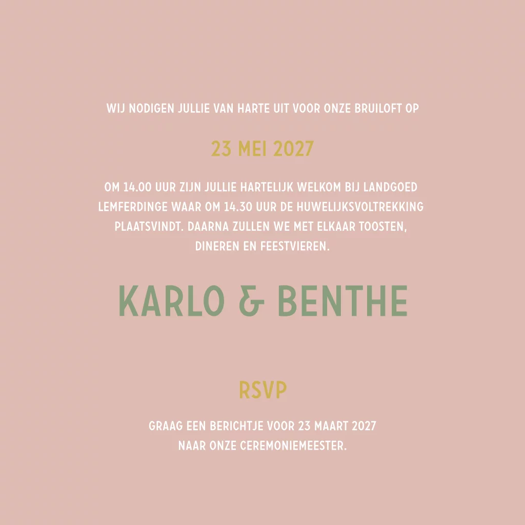 Voeg een prachtige foto van jullie samen toe, zodat jullie liefde straalt vanaf het moment dat jullie gasten de envelop openen.