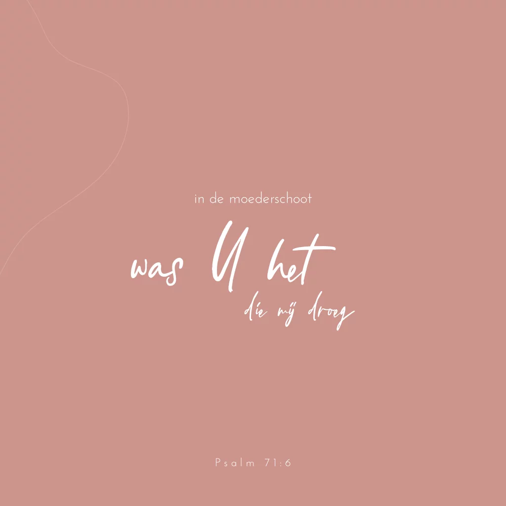 Christelijke wenskaart om kersverse ouders te feliciteren met Bijbeltekst Psalm 71:6 In de moederschoot was U het die mij droeg