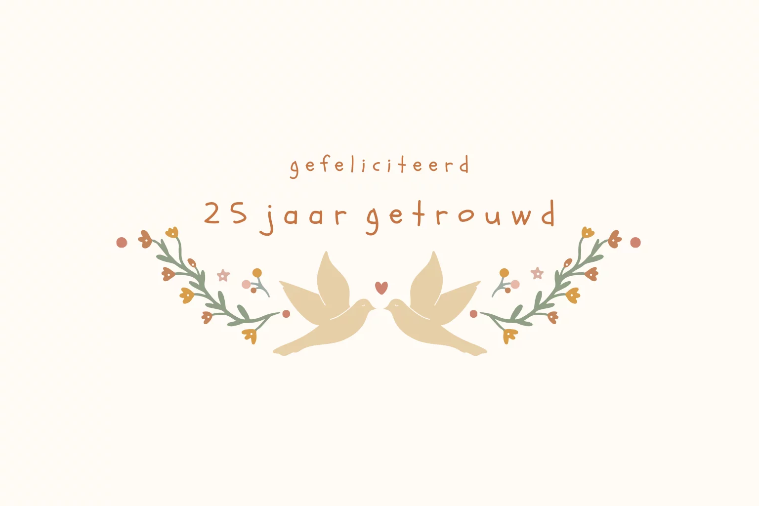 Wenskaart 25 jaar getrouwd folklore duifjes