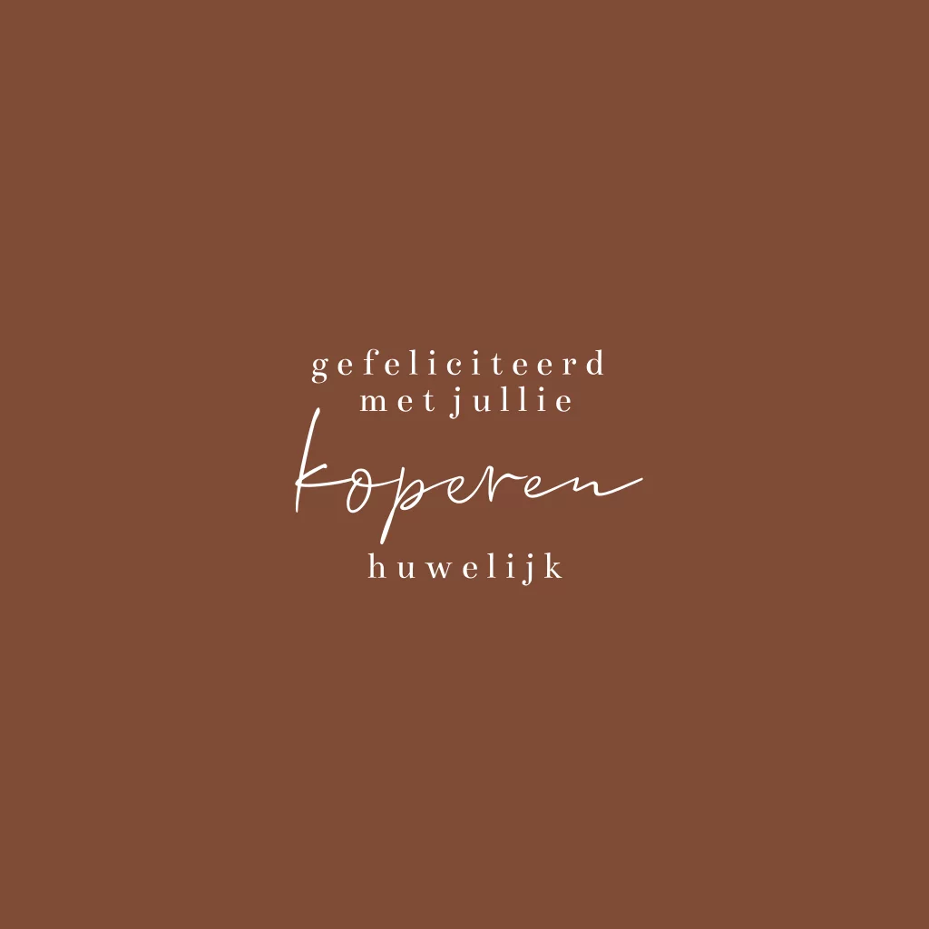 Mooie minimalistische wenskaart of felicitatiekaart voor een koppel dat 12,5 jaar getrouwd is met de tekst: 'gefeliciteerd met jullie koperen huwelijk'.