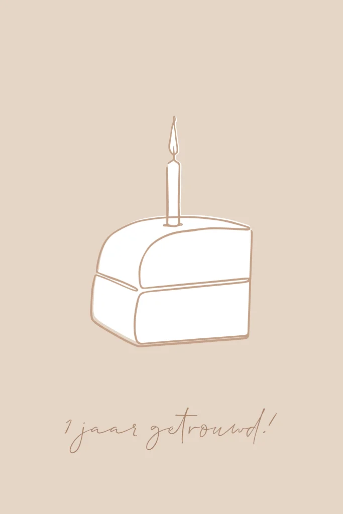 Wenskaart huwelijksjubileum taart one line art