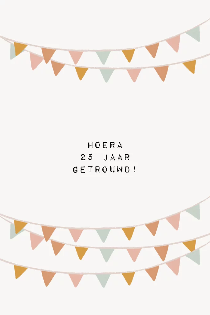 Wenskaart 'hoera 25 jaar getrouwd!' met vlaggetjes