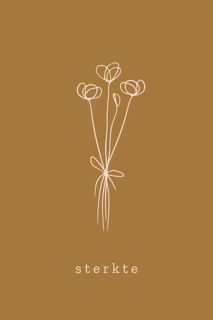 Wenskaart sterkte bloemetjes one line art
