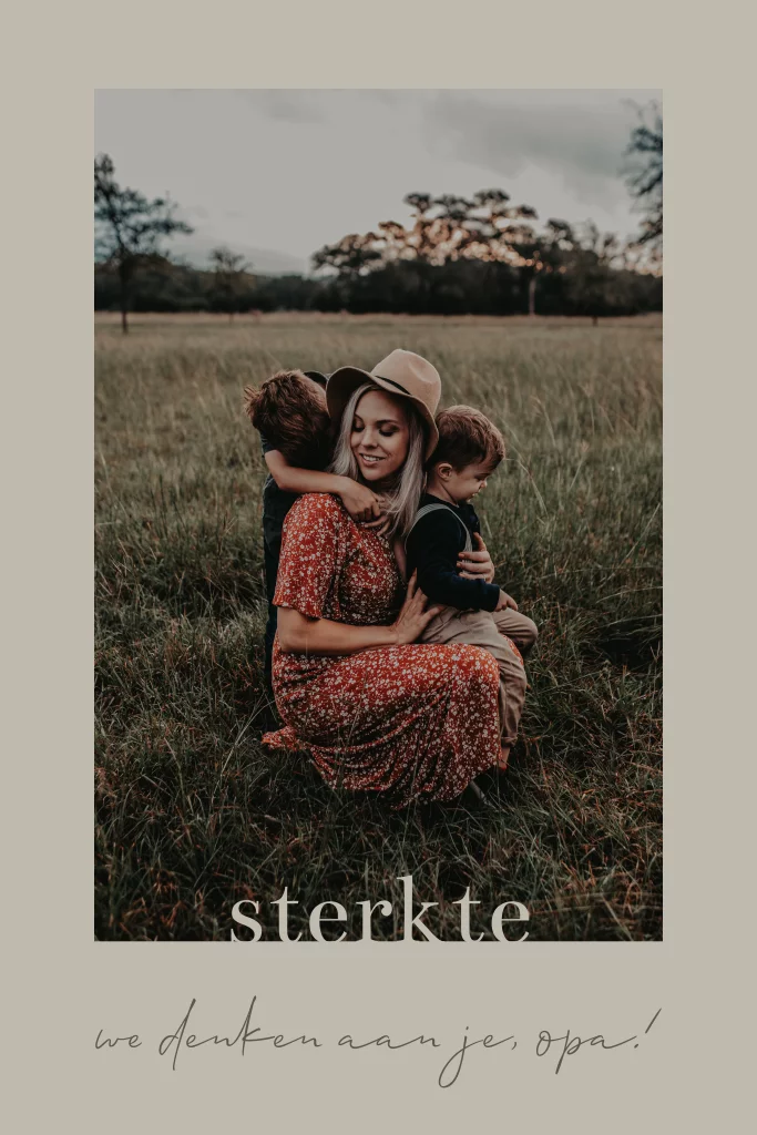 1. Klik op bewerk deze kaart om te starten. Pas de kaart helemaal naar wens aan met je eigen foto, tekst, mooie lettertypes, kleuren of een leuke illustratie. Ben je op zoek naar de foto van het voorbeeld? Deze en veel mooie andere foto's zijn hier te vinden.