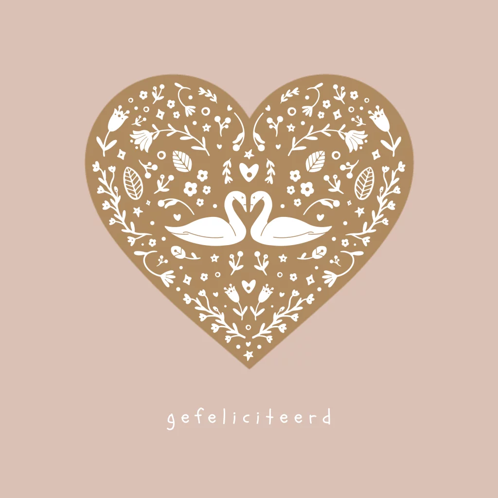 Wenskaart getrouwd folkore hart zwanen