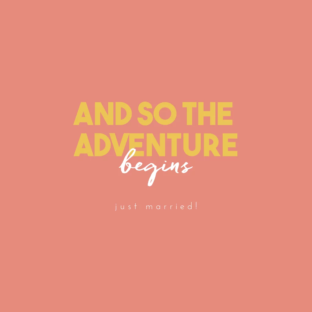 Lieve vrolijke gekleurde wenskaart om een stel wat binnenkort gaat trouwen of net getrouwd is met de tekst: ‘And so the adventure begins’.