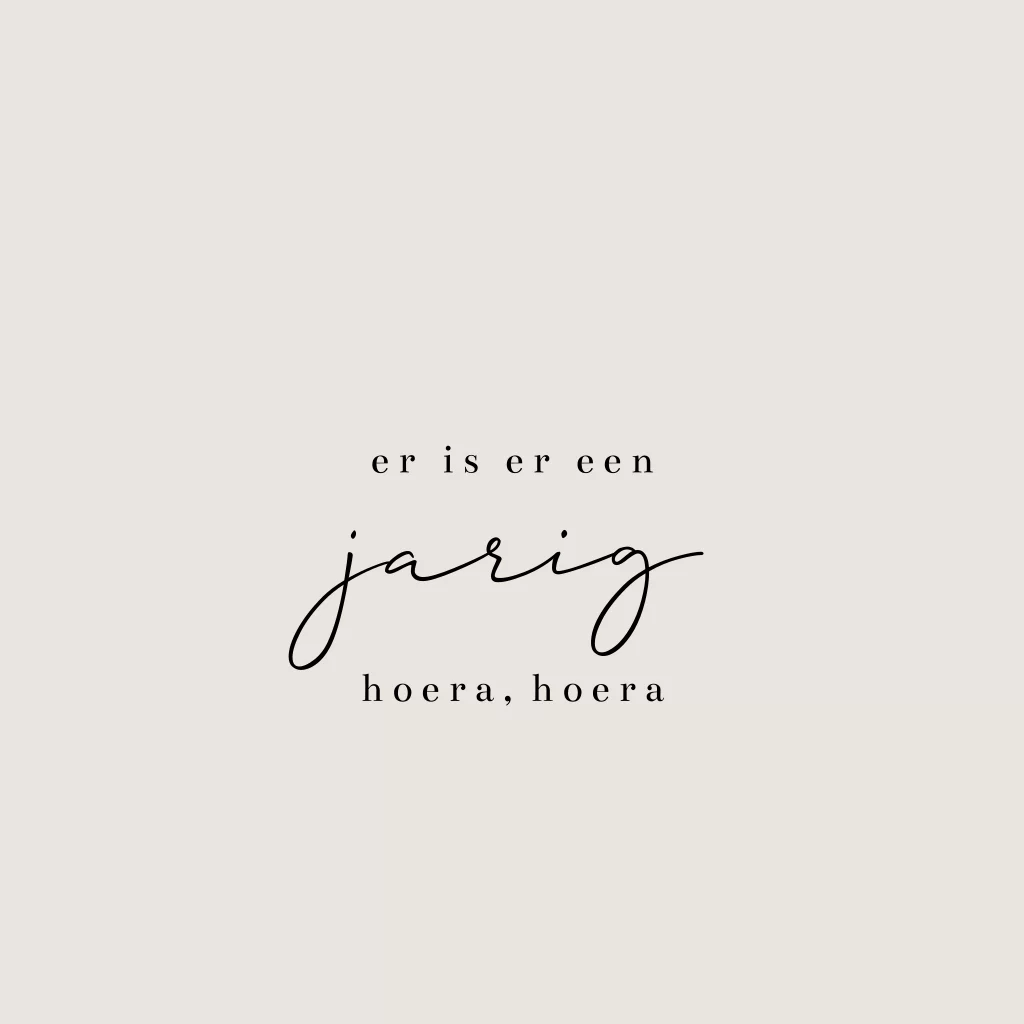 Wenskaart in zachte zandkleur voor een verjaardag. De tekst op de kaart is 'er is er een jarig, hoera, hoera'.
