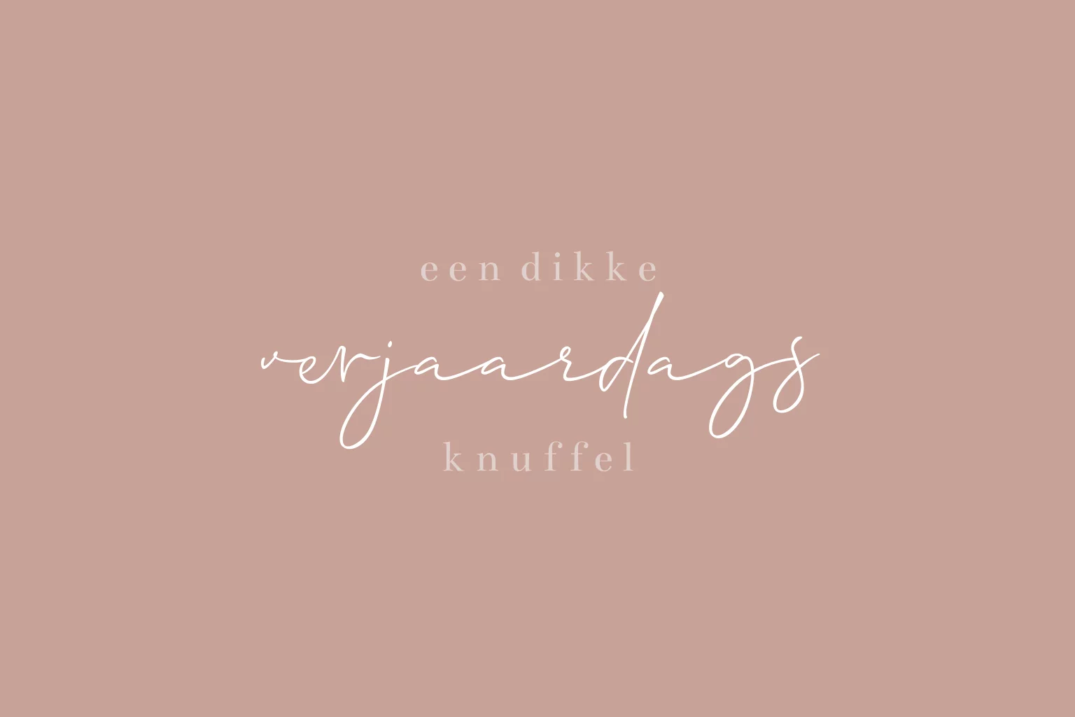 Een lieve wenskaart met een mooie roze kleur om een geliefde te feliciteren met een verjaardag. De tekst op de kaart is 'Een dikke verjaardagsknuffel'.