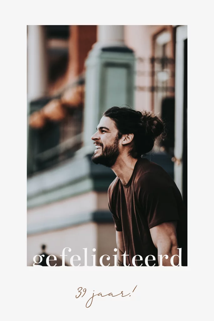 1. Klik op bewerk deze kaart om te starten. Pas de kaart helemaal naar wens aan met je eigen foto, tekst, mooie lettertypes, kleuren of een leuke illustratie. Ben je op zoek naar de foto van het voorbeeld? Deze en veel mooie andere foto's zijn hier te vinden.