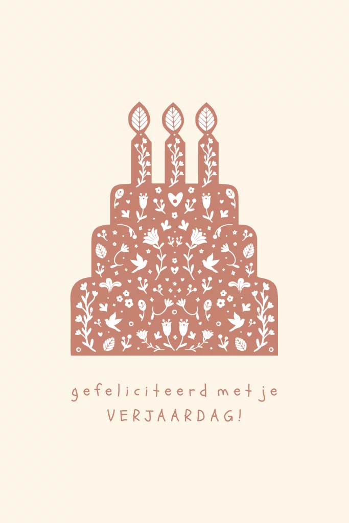 Wenskaart verjaardag taart folklore