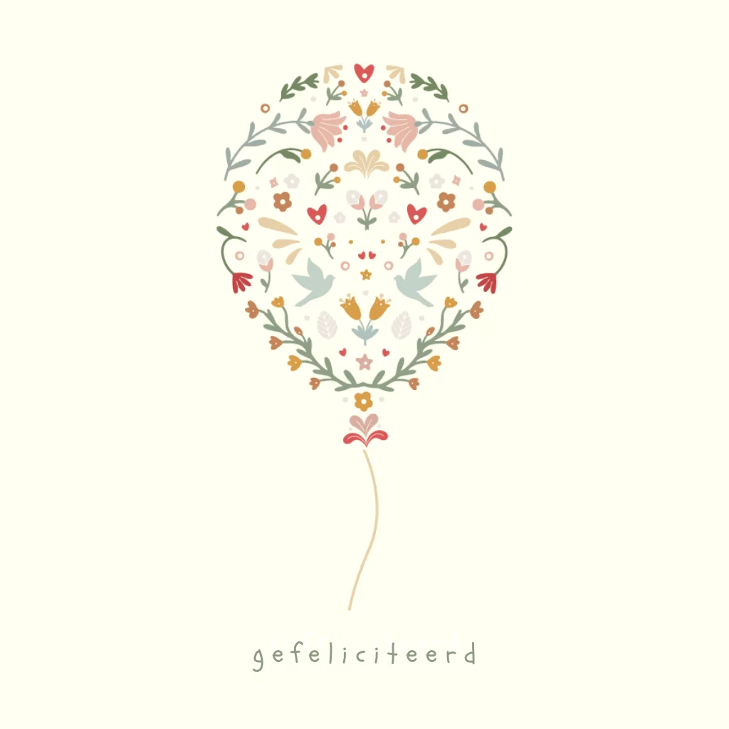 Wenskaart verjaardagskaart folklore ballon
