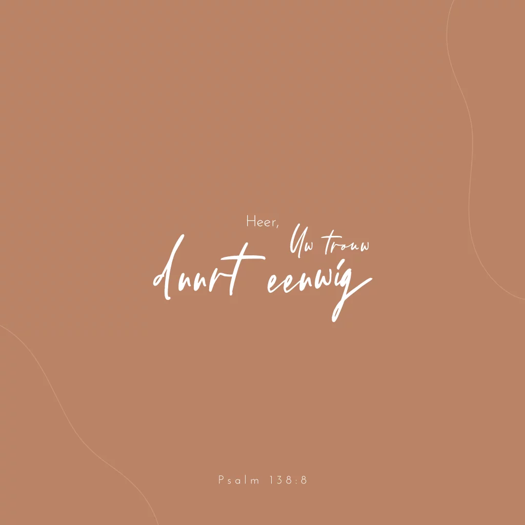 Mooie rustige christelijke wenskaart met de Bijbeltekst Psalm 138:8 Heer, Uw trouw duurt eeuwig